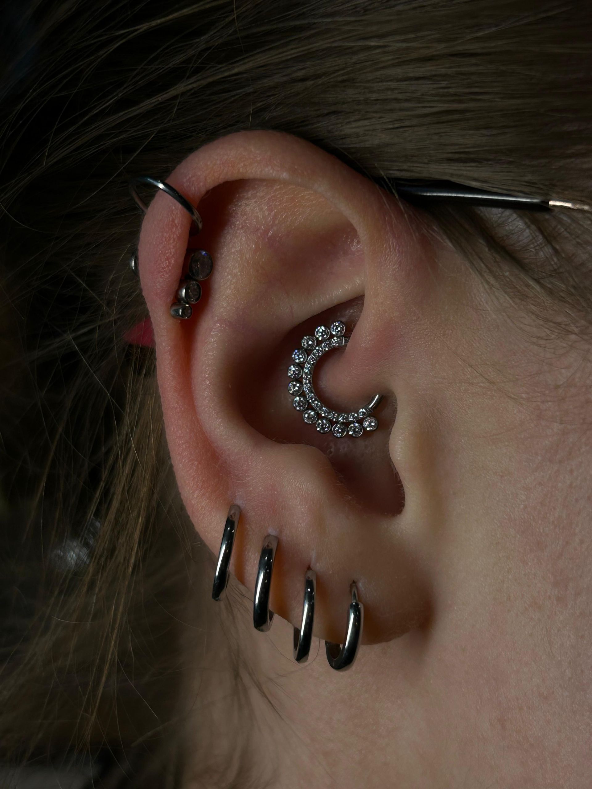 Nel nostro studio eseguiamo piercing con la stessa attenzione, precisione e professionalità che dedichiamo ai tatuaggi. Offriamo un’ampia gamma di gioielli da body piercing di alta qualità, selezionati per garantire il massimo comfort, durata e compatibilità con ogni anatomia.